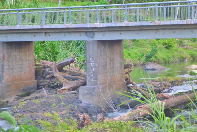 ハリケーンで巨木が流れてきて堰を作ります。橋桁に止まり橋を破壊します。