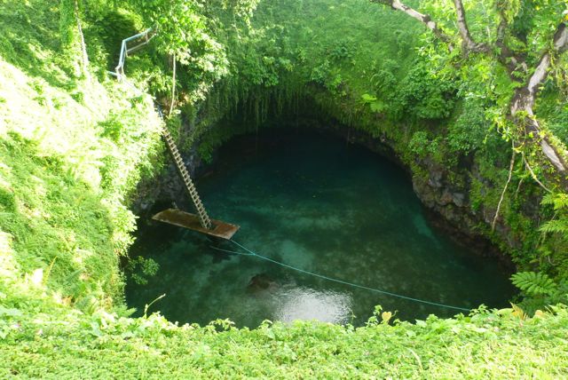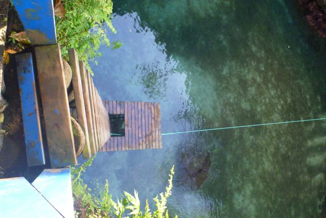 急な梯子を下りて、飛び込みます。