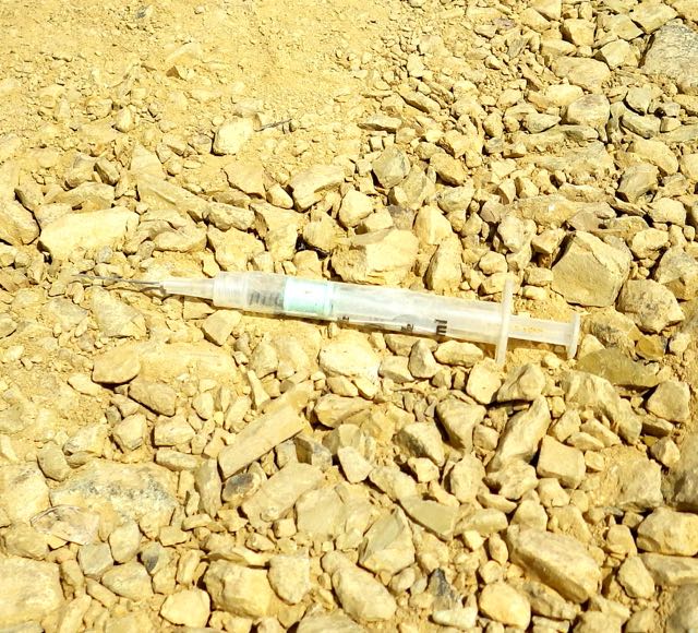 注射針が剥き出しになっています。