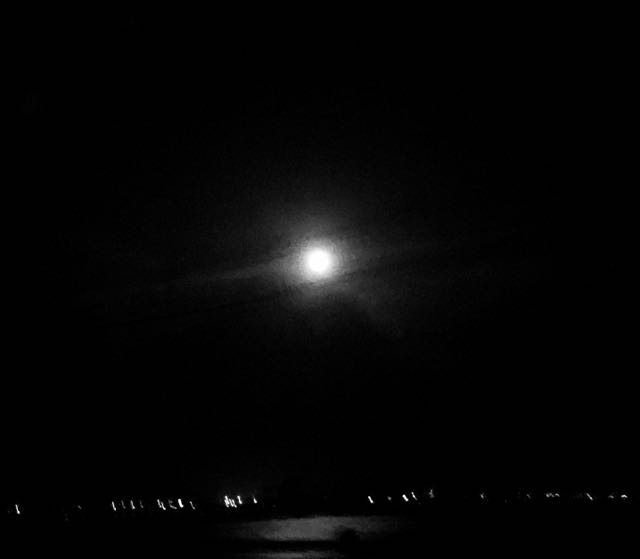 大きな月が、水田に反射している。
