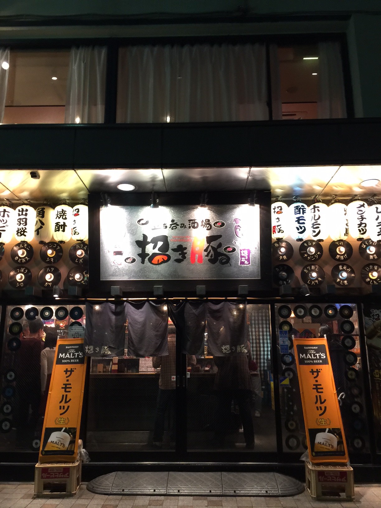 溜まり場の招き豚で酒を酌み交わす。