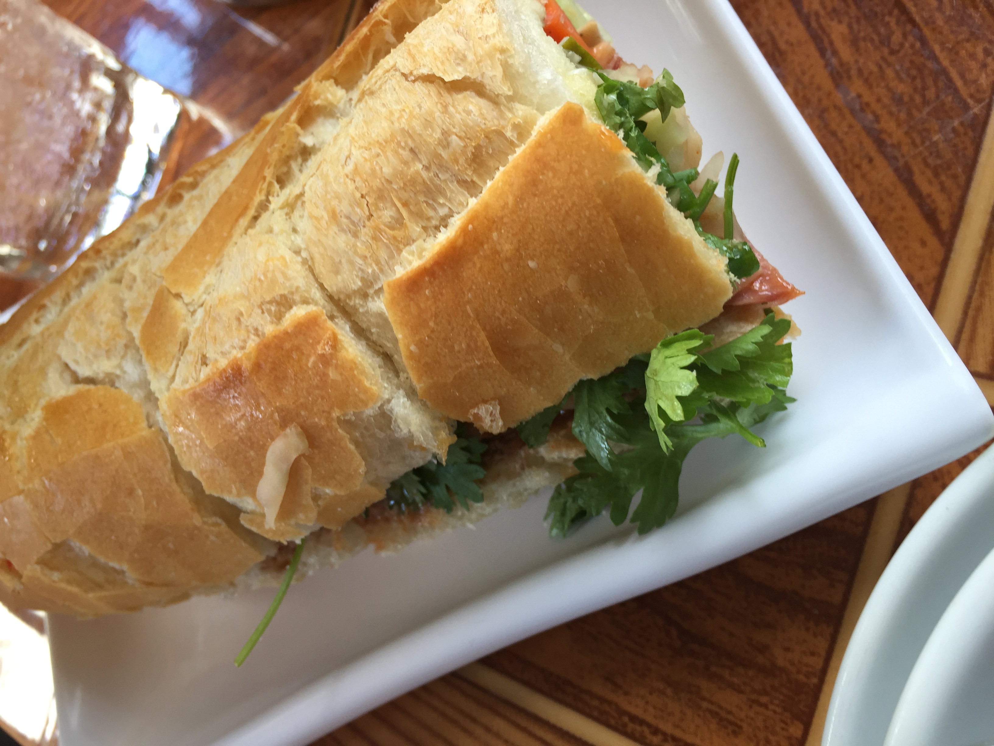 辛いソースとパクチーの入ったフランスパン