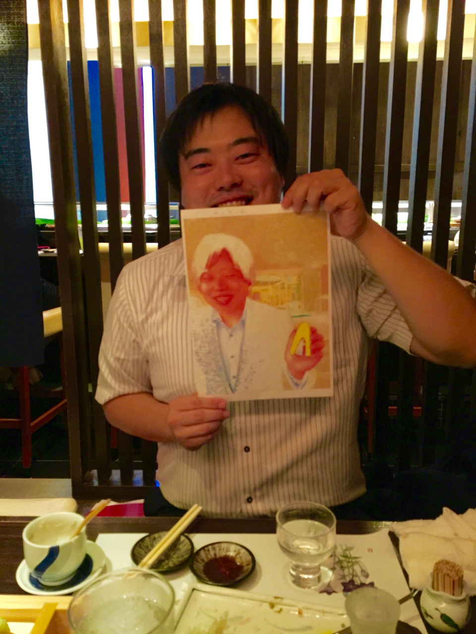 写真は黄色いホッチキスと井上君の図