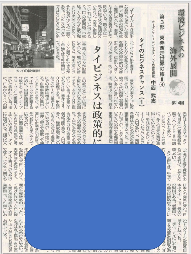 タイでのビジネス展開について新聞に掲載いただきました。