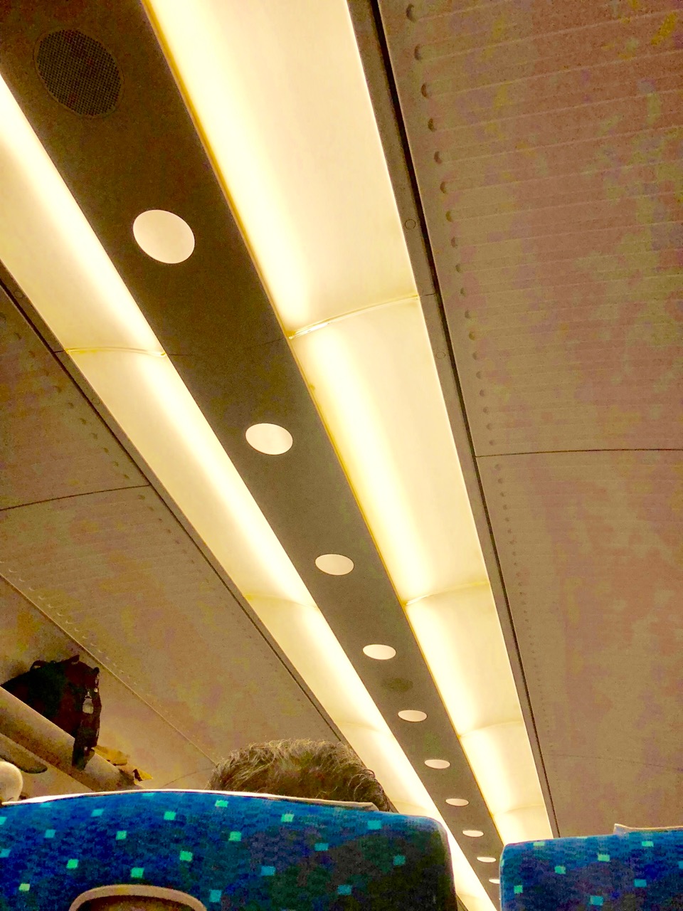 新幹線の照明は明るすぎますね。
