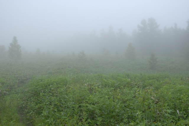 時折雨の降る天気。標高が高いところでは目の前が見えないほどの深い霧に包まれました。