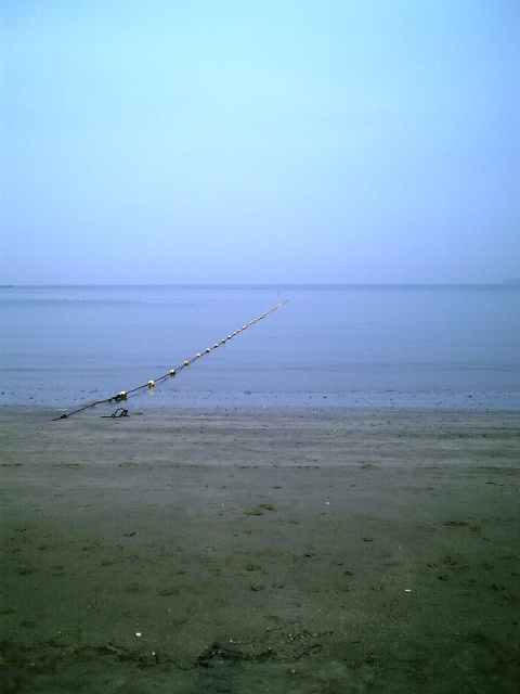 早朝の海岸。海水浴客は一人もいません。