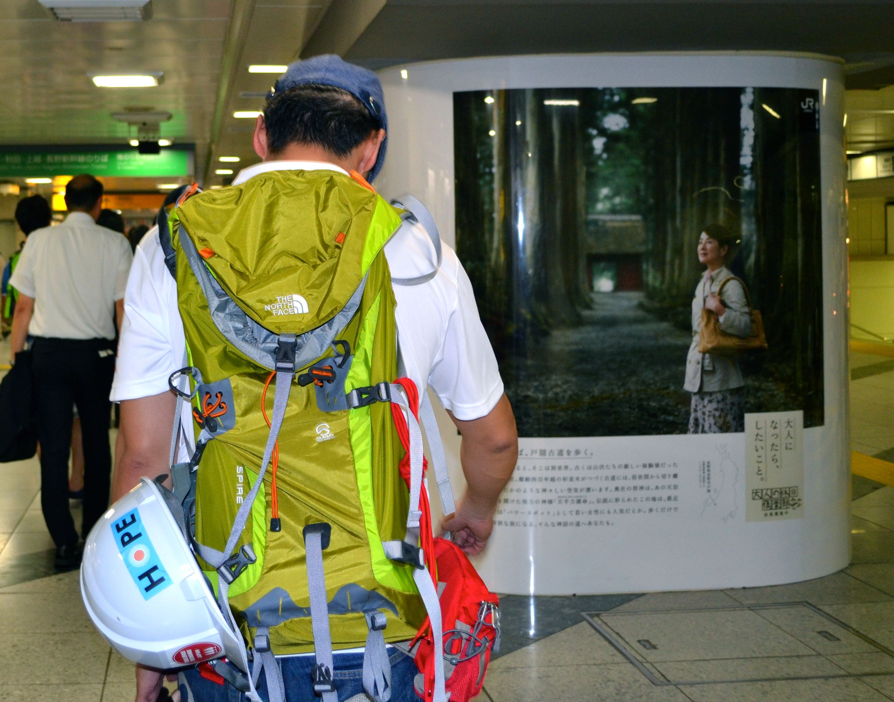 スーツの胸にはHOPEのバッチ。